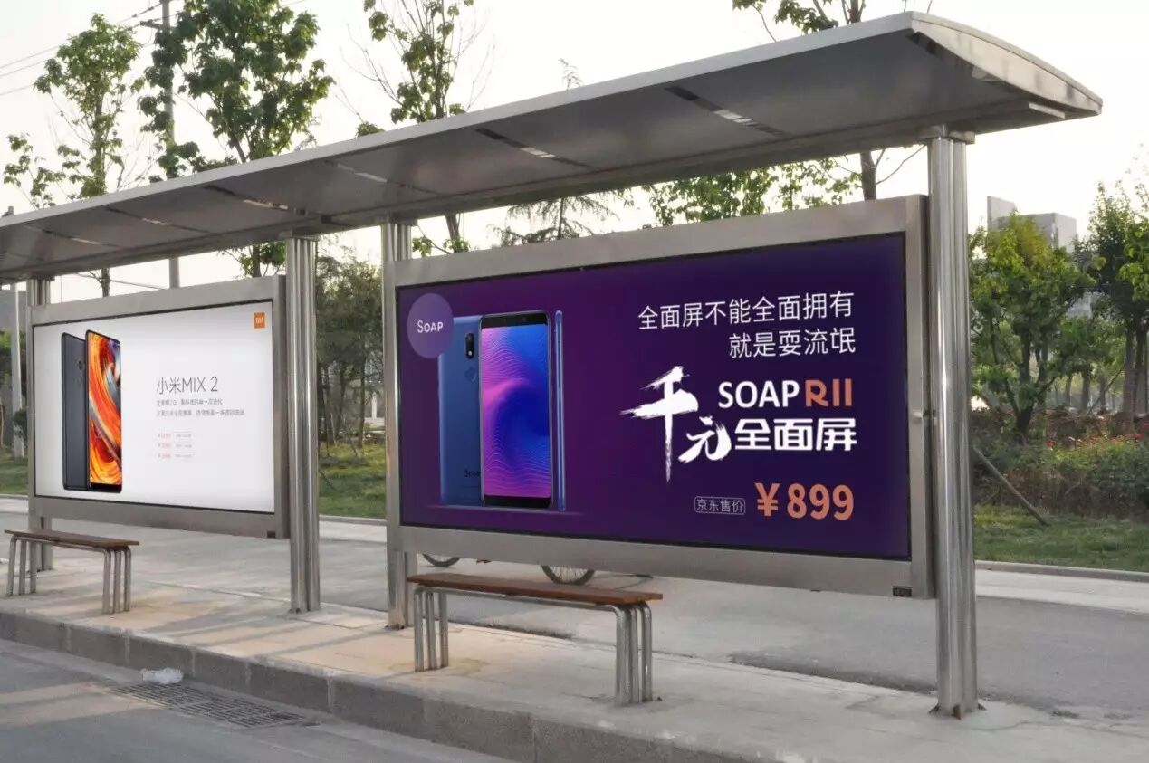发布会当天,SOAP手机首席执行官倪春在会上霸气表态,“全面屏不能全面拥有,就是耍流氓。”彰显了SOAP做全面屏普及者的决心和信心。而在发布会后的营销策略上,SOAP又采取了“硬怼”的市场策略,直接在公交站小米MIX 2广告的旁边打广告,将手机的配置、颜值、价格等要素与MIX 2进行直观对比,让消费者进行选择,与倪总的发言遥相呼应。