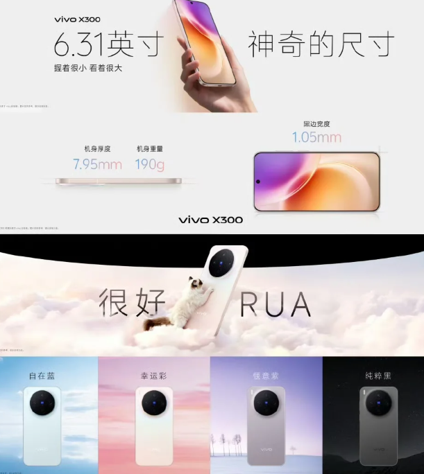 vivo X300系列在工业设计上同样匠心独运。机身厚度仅为7.95mm,重量控制在190g,实现了轻薄手感。正面屏幕黑边宽度压缩至惊人的1.05mm,带来了极具沉浸感的视觉体验。